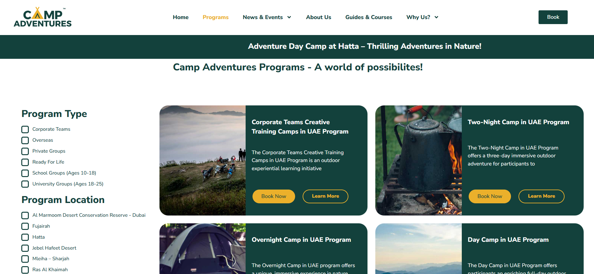 Outdoor-adventure and camping company organizing programs across the UAE for different audience types: schools, universities, corporate teams, private groups. - Emphasis on building life skills (leadership, teamwork, resilience, environmental awareness) and personal growth through immersive outdoor experiences